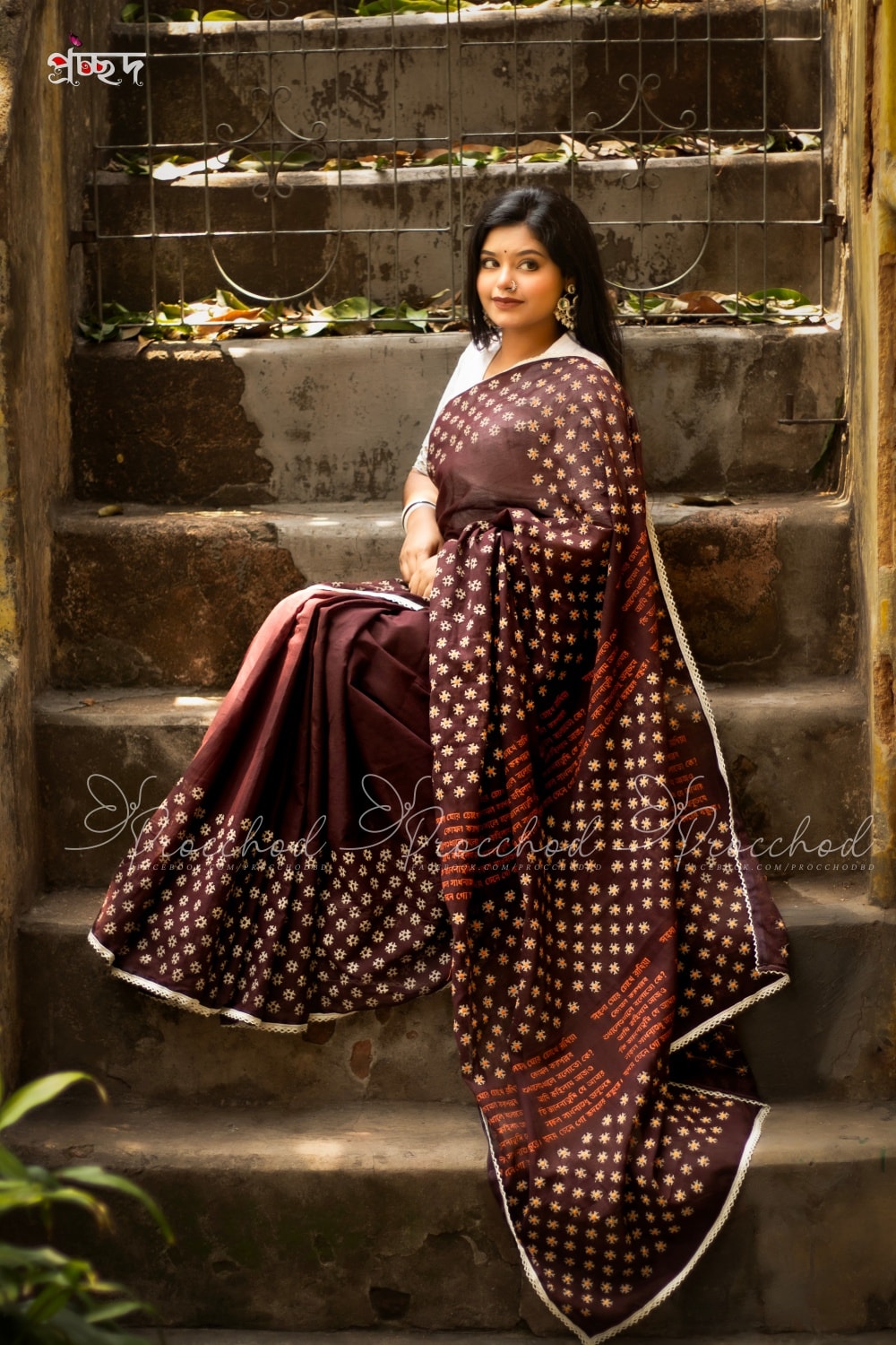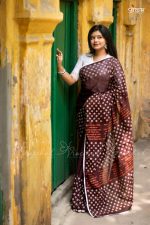 হ্যান্ডলুম কটন ১৪- হাত শাড়িতে রানিং ব্লাউজ পিস থাকবে, পুরো শাড়ীতে ব্লকের কাজ করা এবং